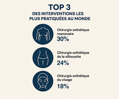 Grâce à la chirurgie esthétique, nombreuses sont les personnes qui décident d’adapter leur apparence à leurs propres idées. Cette opération esthétique peut être réalisée aussi bien sous prescription médicale que par son propre désir de modifier son apparence rien que pour effacer certaines imperfections. Découvrez ici les 3 chirurgies esthétiques les plus pratiquées au monde.