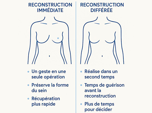 Il n’existe pas de bonne ou de mauvaise réponse. Le choix entre une reconstruction immédiate ou différée dépend de plusieurs facteurs : votre traitement, votre état émotionnel, vos objectifs personnels. Le plus important est d’être bien informée, écoutée et accompagnée.